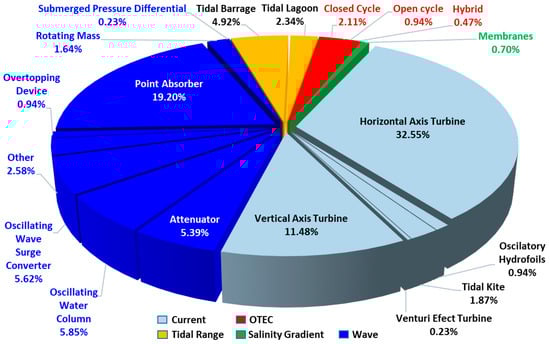 - Pacific Northwest National Laboratory (PNNL). Energy, U.S.D. of Ocean Energy Systems (OES); Wind, I. TETHYS: Marine Energy Content. Available online: https://tethys.pnnl.gov/map-viewer-marine-energy (accessed on 18 April 2019).