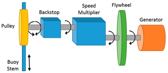 There are different types of PTO systems adopted for different WEC devices, e.g., pneumatic [94,95], hydraulic [96,97,98,99], direct mechanical drive [100,101,102], and direct electrical drive [103,104,105]. An elaborated description of these systems can be found in [106,107,108].