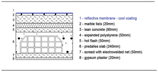 The cool roof is another quite innovative technology based on a well-known, for many centuries, heat transfer principle, namely the reflection of solar radiation by means of suitable coatings. In more detail, a cool coating is able to reflect solar radiation and to emit thermal energy in the infrared wavelengths. Pisello et al. [] developed a new typology of roof by combining a cool and green roof, through the implementation of a particular type of plant reflecting the short-wave radiation. In this way, they obtained the reduction of summer space overheating, in terms of hours, around 98.2%. Santamouris et al. [] analyzed inexpensive passive cooling techniques to improve the life conditions of low-income households. In particular, the aim was to show the efficiency of cool and reflective materials, by comparing them with traditional ones and to evaluate the potentiality of earth tubes and new ventilation systems for improving indoor thermo-hygrometric comfort conditions.