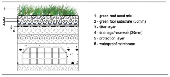 - Niachou, A.; Papakonstantinou, K.; Santamouris, M.; Tsangrassoulis, A.; Mihalakakou, G. Analysis of the green roof thermal properties and investigation of its energy performance. Energy Build. 2001, 33, 719–729. [Google Scholar] [CrossRef]