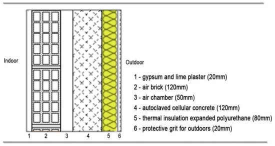 The application of the vented façade implies a reduction of the primary energy required for the winter heating (4.8%) due to the addition of the thermal insulation layer. During the hot season, conversely, the natural vented cavity reduces the surface temperature of the external wall, but the addition of a thermal insulation material makes its effect negligible. Indeed, even if the daily temperature of the external environment (and thus the cavity temperature) goes down, the high thermal resistance of the cavity does not allow a significant heat dissipation from the inside to the outside. These phenomena can be understood better by analyzing the performances, by comparing the base building (e.g., the present building) with the building refurbished with a rockwool thermal insulation and the building refurbished with rockwool thermal insulation and the vented cavity. The results of the thermo-energetic simulations are shown in Table 6. Compared to a simple retrofit with thermal insulation and a new external plaster, the addition of a vented facade reduces the summer energy consumption only of about 0.3%, with no variation of yearly primary energy consumption. For this reason, in this design, that technology was not considered as profitable.