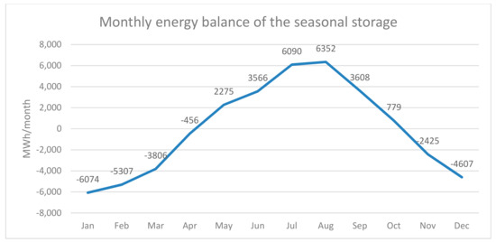 Figure 6. This graph shows the low energy losses of the overall system that can be explained by the low temperature of the storage and amounts to only 6.3% of the energy supply.