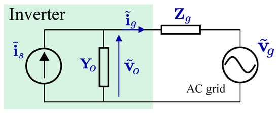 Grid-connected inverters are normally controlled in the dq frame as a current source. Therefore, its small-signal model is built according to the Norton law [