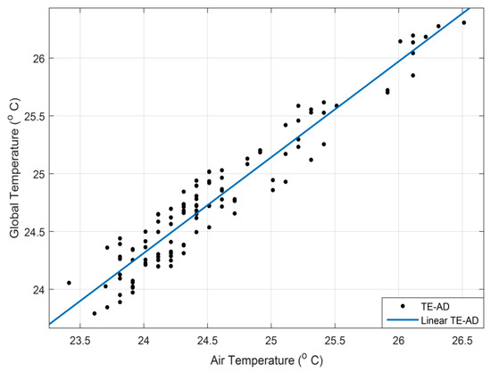 The Figure 17 and Figure 18 show the regression lines and scatter plot of Ta, Tg and Topt under the TE-AD cooling operation. It was found that the coefficient of correlation for Ta:Tg is slightly lower than Ta:Top.