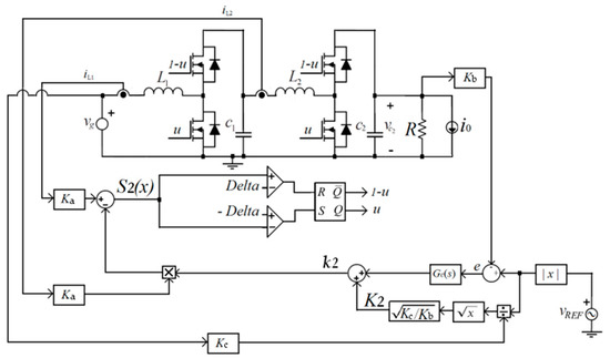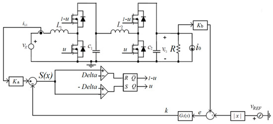 Assuming the frequency is considerably lower than the switching frequency, i.e., the evolution of the sliding surface is much slower than the transients among states, it can be considered that the input inductor current follows its reference k1(t).