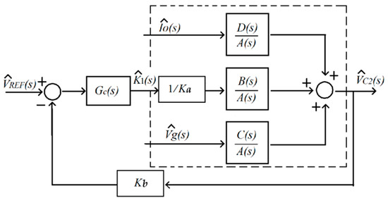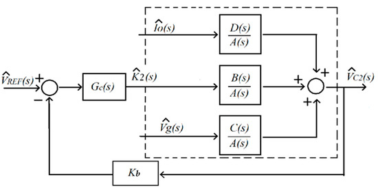 Placing the coefficient values (Equation (16)) in the linearized model (Equation (15)) and taking the Laplace transform the corresponding small-signal model transfer functions are obtained. Figure 9 shows the closed-loop small-signal diagram block. The controller box GC(s) included in Figure 9 accounts for the PI integrator that closes the voltage loop.