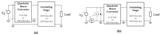 A second solution consists of connecting the unfolding stage in differential mode to the microinverter first stage. In other words, the ground of the unfolding stage is connected to the input voltage terminal Vg. This solution is depicted in Figure 16a.