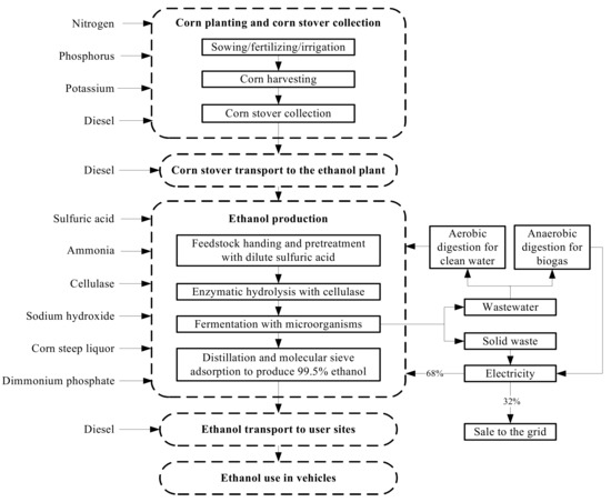 - Xu, X.N.; Yang, Y.L.; Xiao, C.; Zhang, X.M. Energy balance and global warming potential of corn straw-based bioethanol in China from a life cycle perspective. Int. J. Green Energy 2018, 15, 296–304. [Google Scholar] [CrossRef]