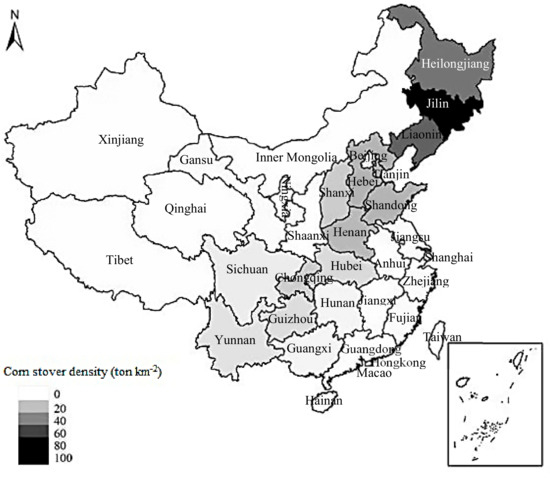 In addition, even though the Chinese government issued seven regulations between 2008 and 2015 to ban the crop residues burning in field [41], corn stover burning in field still remained widespread. As shown in this study, the average corn stover burning in field reached 34.9% of the total corn stover in 2015. Wang and Wang [42] also reported that 26.0% of crop residues were burned in field in China in 2008 and 2009.