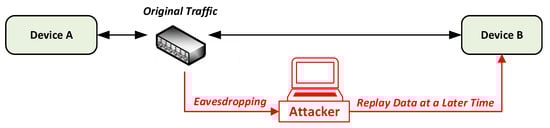 In this attack, an attacker listens on the network and records the transmitted packets to later replay them on the network. This is shown in Figure 5. Given that SMV packets are non-blocking and that there exists a sample counter field for each packet, replayed SMV packets could be detected by monitoring the process bus for sample counters that are repeated or out-of-sequence.