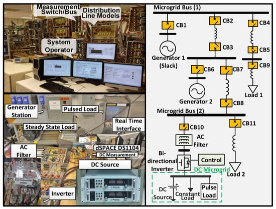 As mentioned earlier, the NN-F was trained using datasets for different operational states/contingencies of the microgrid collected from history recorded data or from simulation data. To ensure the fidelity of the simulation model, the simulated microgrid developed in Matlab/Simulink was verified by comparing bus voltages, currents, and power measurements with experimental data. Table 1 shows that the simulated microgrid accurately describes the real one.