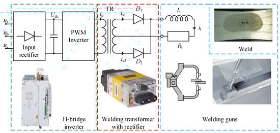 - Klopčič, B.; Dolinar, D.; Štumberger, G. Advanced Control of a Resistance Spot Welding System. IEEE Trans. Power Electron. 2008, 23, 144–152. [Google Scholar] [CrossRef]