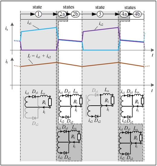 These three states are determined by the direction of the currents and the activity of the windings in the transformer as shown in Figure 5.