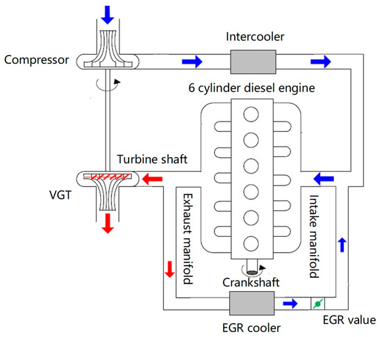 VGT-equipped diesel engine with exhaust gas recirculation (EGR) system.