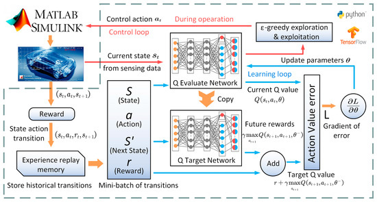 - Tan, H.; Zhang, H.; Peng, J.; Jiang, Z.; Wu, Y. Energy management of hybrid electric bus based on deep reinforcement learning in continuous state and action space. Energy Convers. Manag. 2019, 195, 548–560. [Google Scholar] [CrossRef]