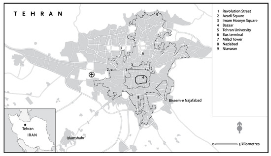 - Bayat, A. Tehran: Padox City, Metropolitan Disorders—7, New Left Review 66. Available online: https://newleftreview.org/issues/II66/articles/asef-bayat-tehran-paradox-city.pdf (accessed on 1 December 2018).