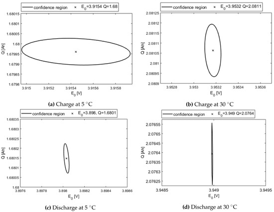 - In the case of charge, the confidence region of becomes smaller as the temperature rises (see Figure 4a,b).