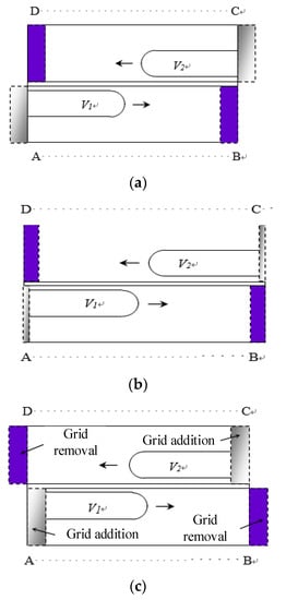 Addition and removal of meshes: (a) t moment; (b) t + Δt moment; (c) t + nΔt moment.