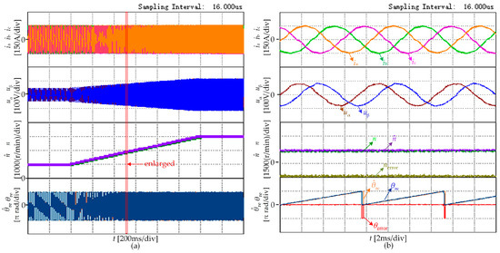 - Wu, J.; Wei, H.; Zhang, Y. Sensorless vector control of permanent magnet synchronous motor based on model reference adaptive system. In Proceedings of the Third IEEE International Conference on Computer and Communications (ICCC), Chengdu, China, 13–16 December 2017; pp. 2879–2883. [Google Scholar] [CrossRef]
