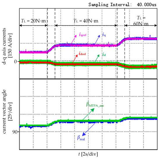 - The proposed sensorless-MTPA control scheme is realized on a 20 kW IPMSM where the sensorless control performance and the MTPA control performance are tested. The feasibility and effectiveness of the proposed method are verified by the experiment’s results.