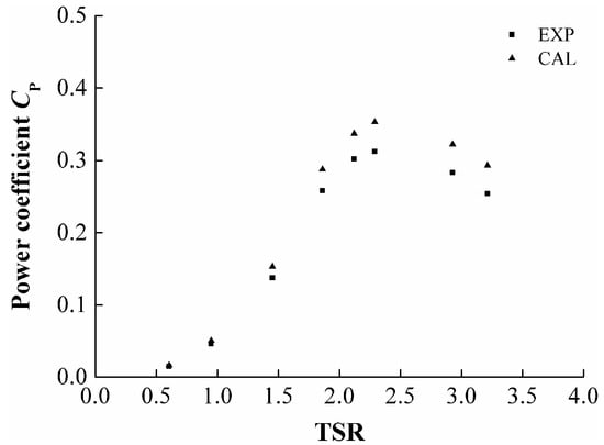 In order to verify the accuracy of the computational model, the calculation results of the CFD model are compared with the experimental data of Castelli et al. [31]. Figure 6 shows a comparison of the calculation results and experimental data. As can be seen, they are in good agreement with a maximum difference of 15.252% at TSR = 3.214. The computational model can well predict the optimum TSR. The main reason for the overprediction of the power coefficient obtained by the 2D CFD model is the neglect of the losses of blade tips and main shaft as well as rotor arms.