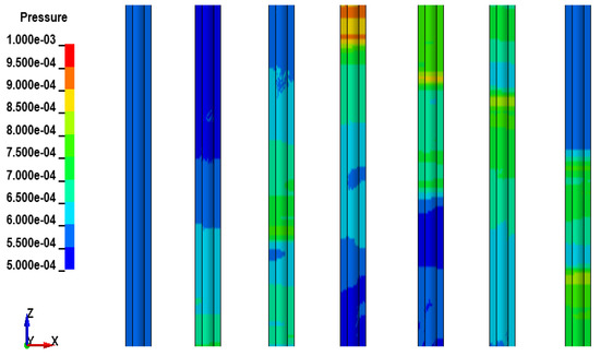 44]. Before the shock wave reaches the packer, the contour of annulus pressure is captured along the different positions of the wellbore from bottom to top, as shown in