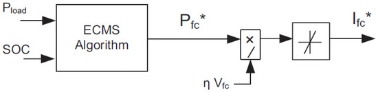 The block diagram of the equivalent fuel consumption minimization strategy (ECMS).