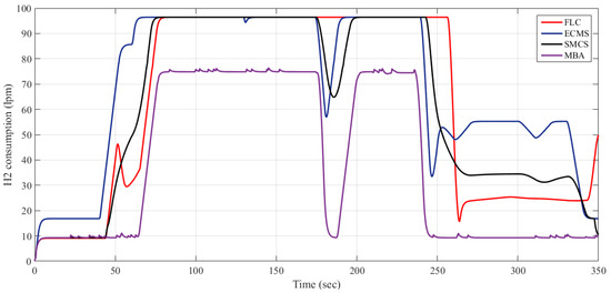 Figure 10 and Figure 11 show the time responses of the hydrogen consumptions obtained by each management strategy.