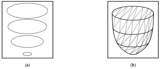 Sketch map of the lofting process: (a) A set of closed surfaces; (b) the solid surface connecting closed surfaces by edges and facets.