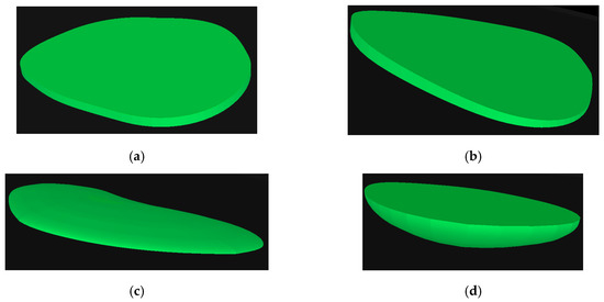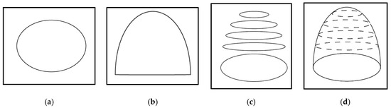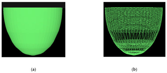 There are mainly two 3D modeling methods used by DMatlas, namely lofting and Boolean operations [10]. Lofting is the procedure that takes a set of closed curves lying in parallel planes (Figure 1a) that are joined together to form a surface [11]. These curves are automatically linked with edges and facets to form the solid surface (Figure 1b). Lofting can also be realized using a path and closed curves, which means distributing one or multiple closed curves along the path in different positions. Figure 2 shows the front view of a lenticular sandbody modeled by DMatlas (Figure 2a) and its corresponding wireframe mode (Figure 2b).