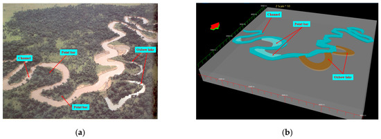 Modern meandering river image (a) and corresponding model by DMatlas (b).