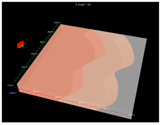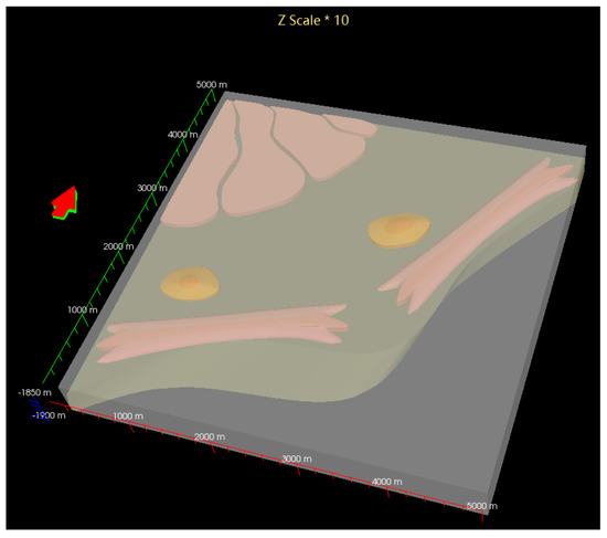 On a field-wide scale, the gross reservoir thickness generally varies between 200 m and 400 m [32]. Referring to top Dongying Formation structural contour map [27], Lower Dongying formation could be deformed close to real topography as Figure 29, showing alternating sag and rise.
