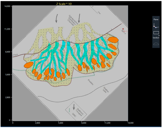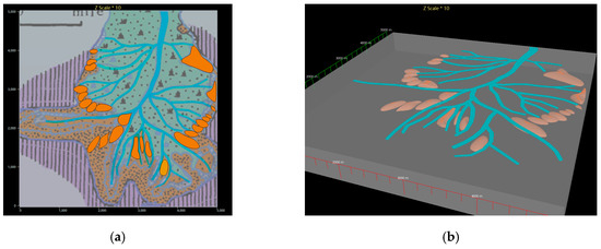 Maximum vertical geometries are provided specifically to each facies association with geologic insights. For instance, for river mouth bars, only convex lenticular cross-section is provided. Figure 17 indicates a preliminary delta modelling referred to as the Mississippi River bird-foot [13], in which main distributary channels and proximal river mouth bars are modelled for demonstration.