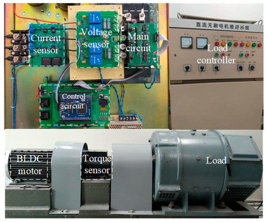 Brushless DC (BLDC) motors are widely used in aerospace, electric vehicle, and household applications due to their inherent advantages, which include high-power density, high efficiency, and simple structure [1,2,3]. Position sensors, such as Hall-effect sensors, are often employed to acquire rotor position signals for proper commutation, however, misalignment in the mechanical installation of the sensors, extreme temperature conditions, or electromagnetic interference may induce errors in the rotor position information, which severely limit the application scope of BLDC motors [4]. To overcome these disadvantages, many sensorless BLDC motor techniques have been proposed in recent years. The zero-crossing points (ZCPs) of the back electromotive force (EMF) are easily detected and widely used in sensorless control. Among the various sensorless strategies currently available, these presented ZCP detection techniques show satisfactory results in specific application scopes; unfortunately, these strategies are still disturbed by various commutation errors [5,6,7]. The ZCPs of back-EMF are generally abstracted from the terminal voltage, but the terminal voltage is vulnerable to the high-frequency components due to the pulse-width modulation (PWM) switching. A low pass filter is usually applied to filter high-frequency switching noise of the terminal voltage, whereas the filters will introduce phase delay for ZCPs detection of back-EMF and the phase delay varies with the operating speed. The lag angle will increase as the motor speed rises. The distorted terminal voltage caused by the freewheeling process also will generate the commutation error. The disturbed terminal voltage may make position detection signal phase ahead, deviating from the ideal commutation instants. The inaccurate commutation signals will induce current pulsation and increase conduction loss.
