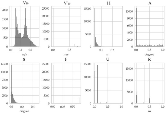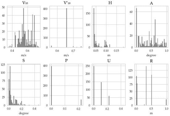 Figure 3 illustrates distribution of the model side data. As seen from it, V10 shows a bimodal distribution, V10 and R illustrate unimodal distribution, H, A, S, P and U are consistent with exponential distribution.