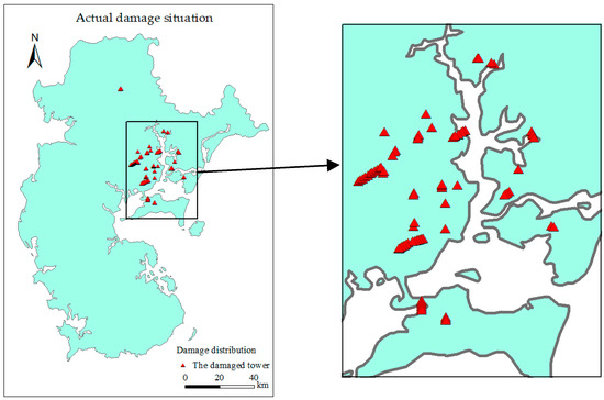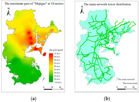 In recent years, the typhoon had huge impact on China’s coastal power grids [17,18,19]. Taking the typhoon ‘Mujigae’, no. 22 of 2015, as an example, it was strengthened from the tropical depression that was originally located near the Philippines. It entered eastern part of the South China Sea around noon on 2 October 2015, and its intensity gradually strengthened. It landed on the coast of the Potou District of Zhanjiang City around 14:10 on 4 October 2015, and affected as far as the Pearl River Delta. At the time of landing, the maximum wind near the typhoon center was 15 class (about 50 m/s), and the lowest pressure in the center was 940 hPa. For the first time, the gust in Zhanjiang reached 18 class and set a historical record. ‘Mujigae’ was the strongest typhoon that landed on China since October 1949. It caused 256 trips to lines of 35 kV and above, and damaged 80 towers [20].