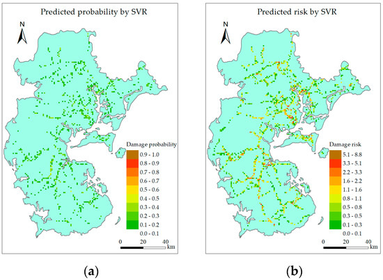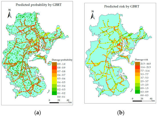The visualization of damage probability or risk will make the decision-making process of power sector intuitive, simple, and specific in disaster prevention and mitigation, and is of great significance for promoting efficiency and reducing cost. Therefore, in this paper, the predicted damage results are visualized by use of z score method in ArcGIS 10.4, as shown in Equation (19)