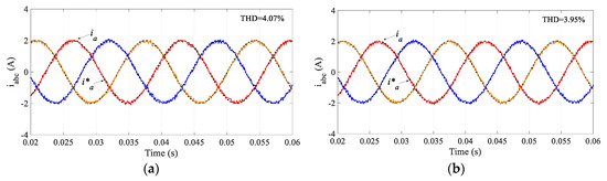 Figure 4 compares the performance of the output current regulation between the traditional MPC and the proposed SMPC. As observed in this figure, the performance of the proposed SMPC is very similar to the traditional MPC. The total harmonic distortion (THD) in the traditional MPC is 4.07% while it is 3.95% in the proposed SMPC.