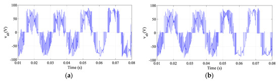 MC output line-line voltage under load variation: (a) MPC and (b) proposed SMPC.