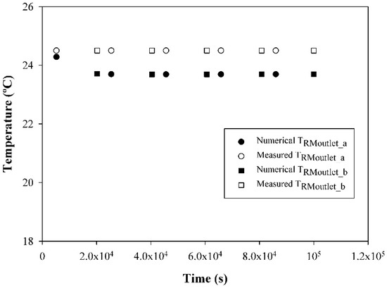 where Q1 and Q2 corresponds to the water flowrate of the main and secondary circuit respectively (Table 2). The density of the water (ρw) corresponds to 999 kg/m3 and the specific heat (cpw) to 4.186 kJ/kg°C. The Tinlet_RM is determined by: