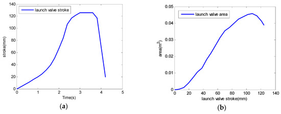 Launch valve is a very important gear of catapult launch system which can get different catapult energies by adjusting the stroke of launch valve and effective launch valve opening area. In order to make the model of launch valve conform to real condition mostly, this article used the test data of the stroke of launch valve and effective launch valve opening area [26]. The test data of the launch valve are shown in Figure 6.