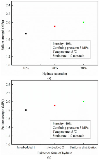 Failure strength of HBMS: (a) with different hydrate saturations; (b) in different existence forms of hydrate.