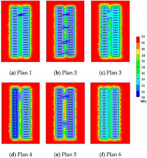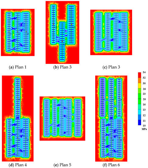 Pressure field under different well pattern and multiple neighboring wells in six designed plans.