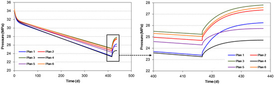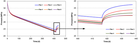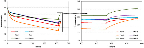 Through analyzing the pressure recovery curve of each plan in Figure 11, we obtain some views as follows: