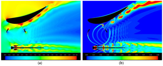 Details of velocity (a) and turbulent kinetic energy maps (b) for the hydrofoil shaped diffuser with φ = 0°.