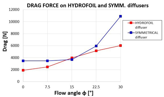 - For the hydrofoil shaped diffuser the stream tube width slightly increases at φ = 15° but appears drastically narrowed at φ = 30°, while for the symmetrical diffuser the width continues surprisingly to grow up to φ = 30°.