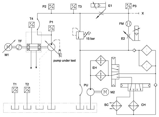 Hydraulic scheme of the test rig for the model validation.