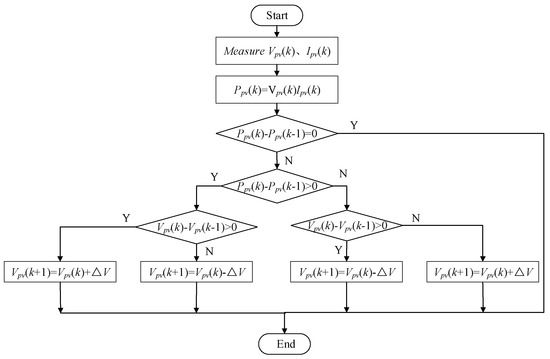 MPPT refers to the tracking and control of DGs, so that the maximum power output can be obtained in all circumstances. The common MPPT methods of PV arrays are the constant voltage method, disturbance observation method, and incremental conductance method. There is a maximum power point when a PV array operates under certain conditions. The main principle of the disturbance observation method is to apply a periodic constant step disturbance to the output voltage of PV array ∆V (or a constant step disturbance to the output current of the PV array ∆I). If the ∆P is positive, it means the working point voltage is less than the maximum power point voltage, and the disturbance in the original direction will continue to increase. Otherwise, the working point voltage will be larger than the maximum power point, and a negative direction will be added. The working point of the PV cell will be kept close to the MPPT. In this paper, the PV power generation system uses disturbance observation which is the most commonly used method.