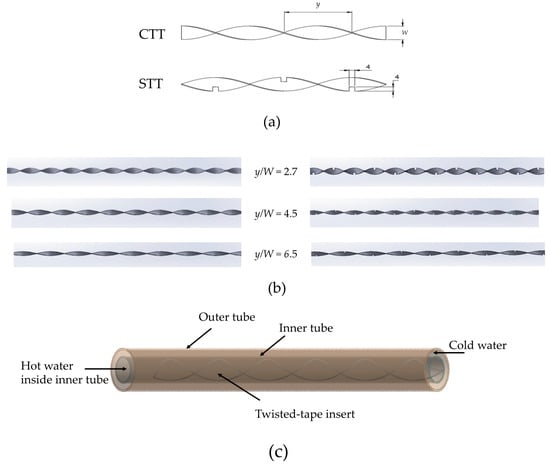 - Yaningsih, I.; Istanto, T.; Wijayanta, A.T. Experimental study of heat transfer enhancement in a concentric double pipe heat exchanger with different axial pitch ratio of perforated twisted tape inserts. AIP Conf. Proc. 2016, 1717, 030012. [Google Scholar] [CrossRef]