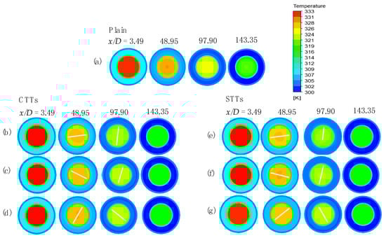 - Based on both the temperature and velocity distributions at the cross sections, the heat transfer mechanism has been definitely evaluated.